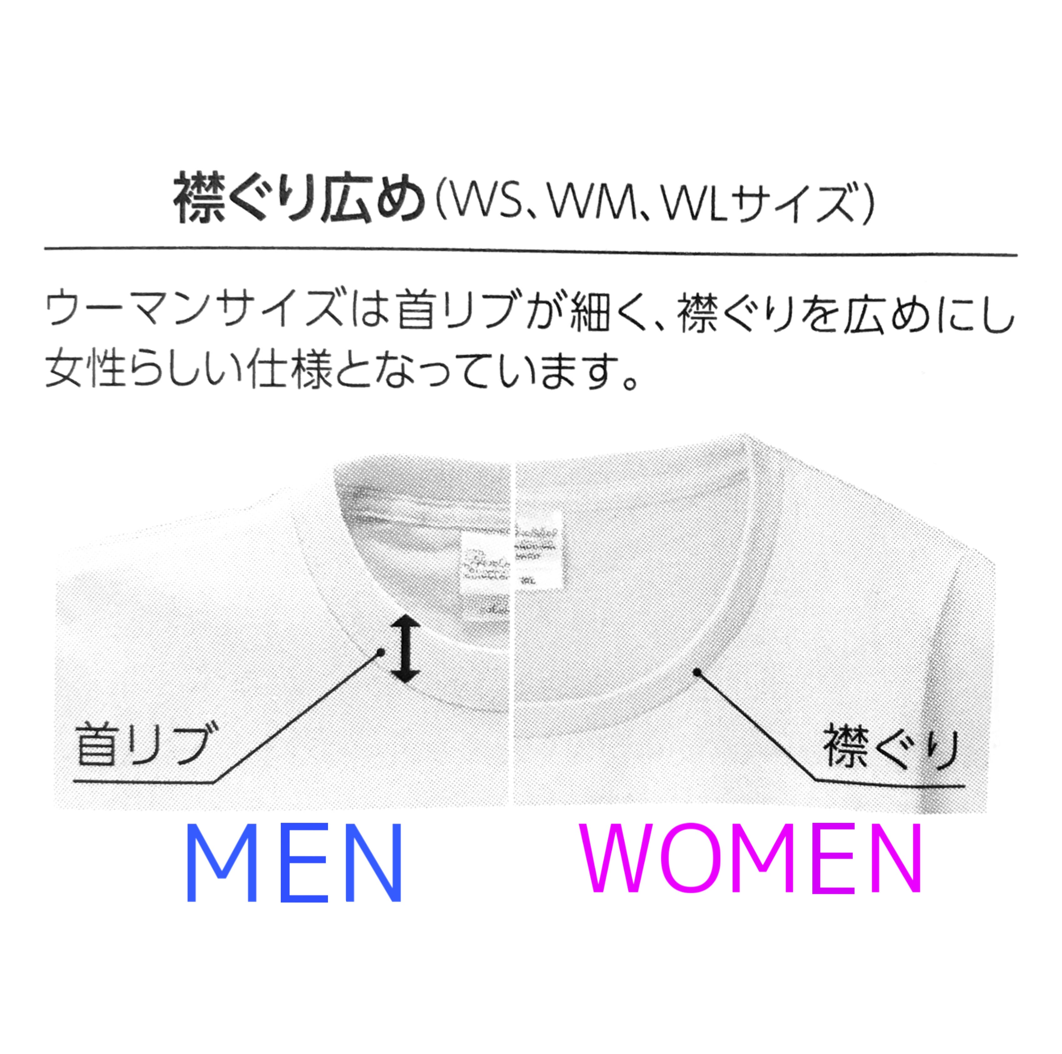 ※ウーマンサイズは、首リブが細く、襟ぐりが広めなので、女性らしい仕様となっています。