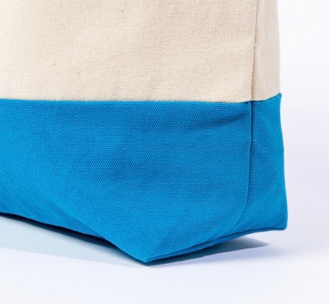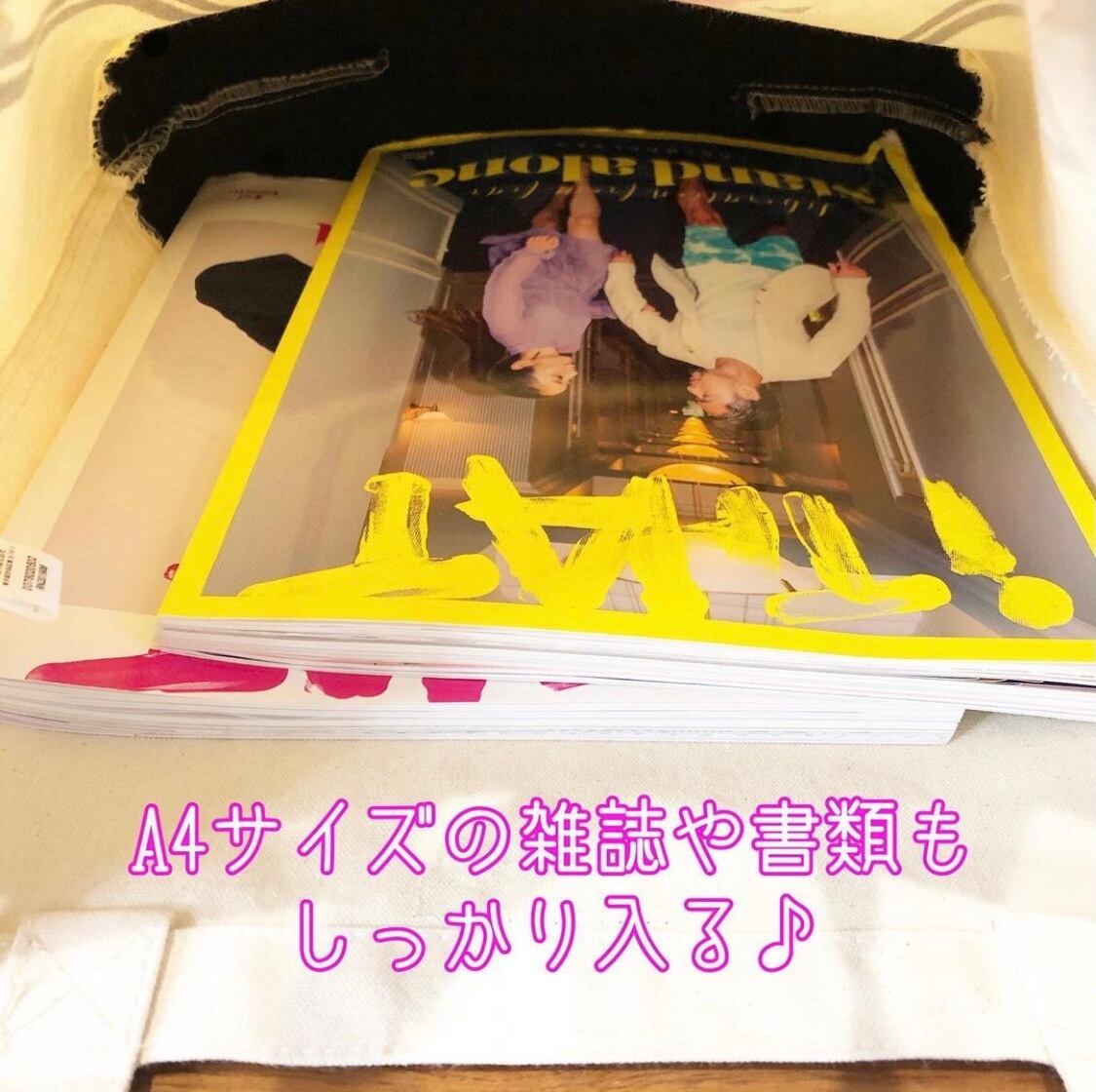 バイカラーがアクセントの肉厚トートバッグは、A4サイズの書類やファイルもラクラク入る、使い勝手のよさ♪