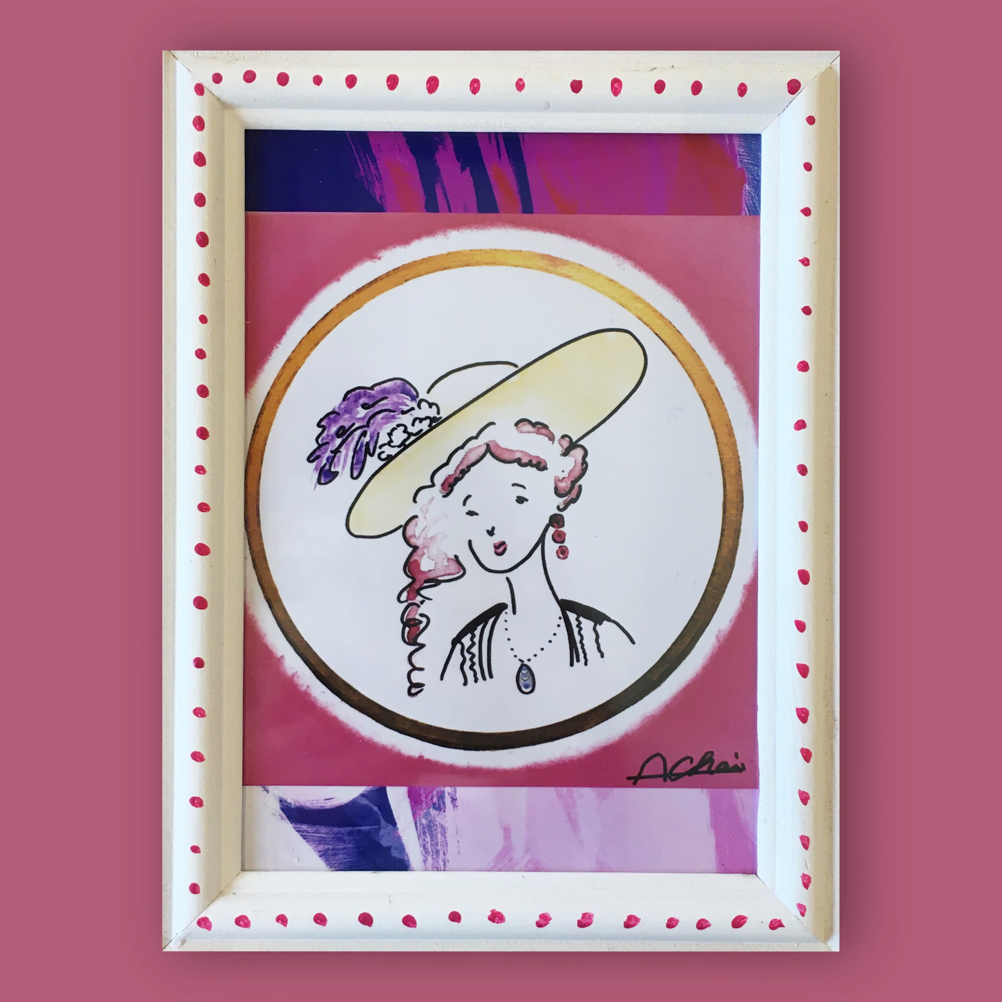 ※原画をフォト印刷し、オリジナルのフレームに入れています。フレームは一点一点手描きしておりますので、若干色味やデザインが異なります。